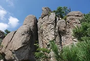 정상에서 조금지나 갈림길옆 바위와 소나무......