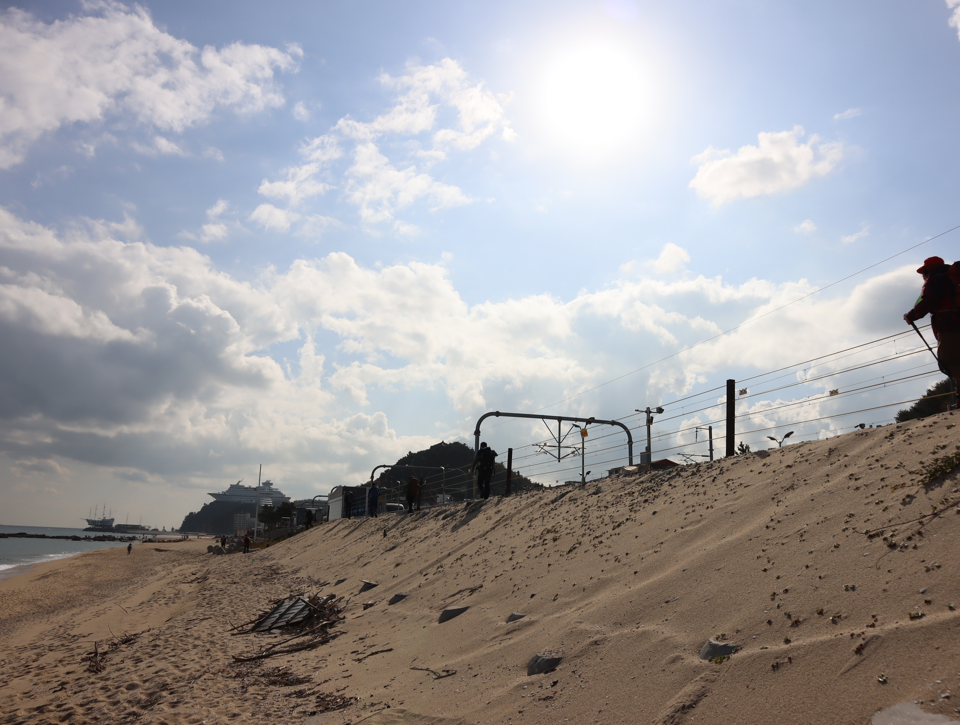 우리는 산으로 향하는 길을 포기하고 바닷가로 걷기로....