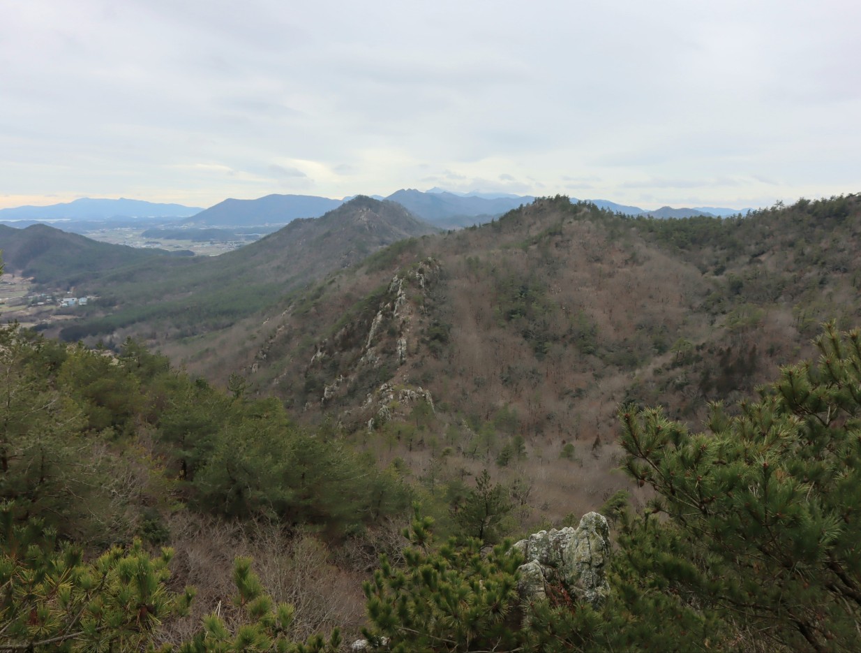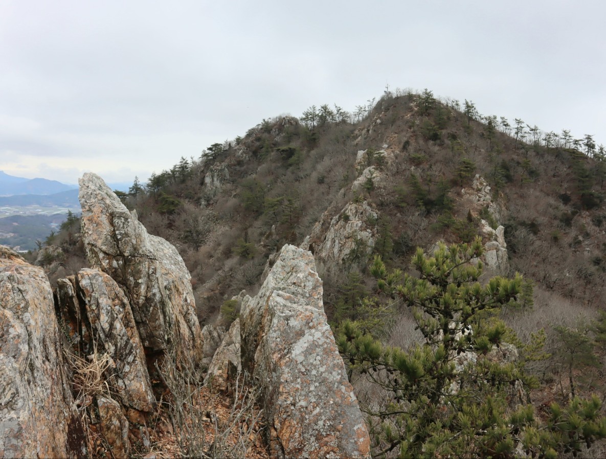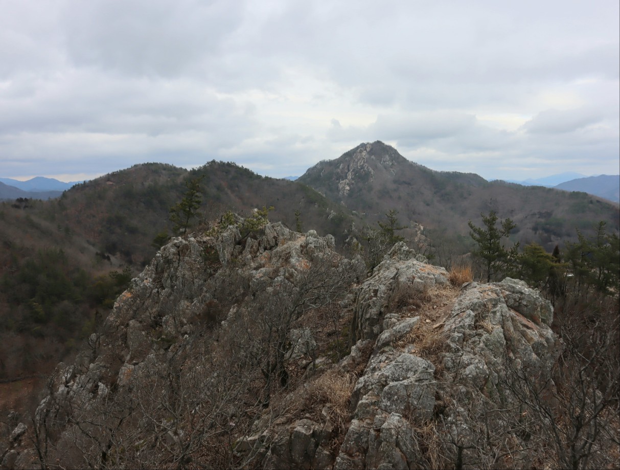 석문으로 가는 능선 봉우리들...