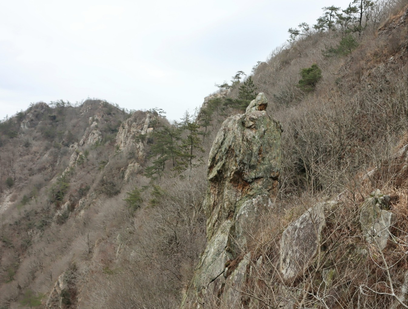 거대한 바위봉을 돌아서며...